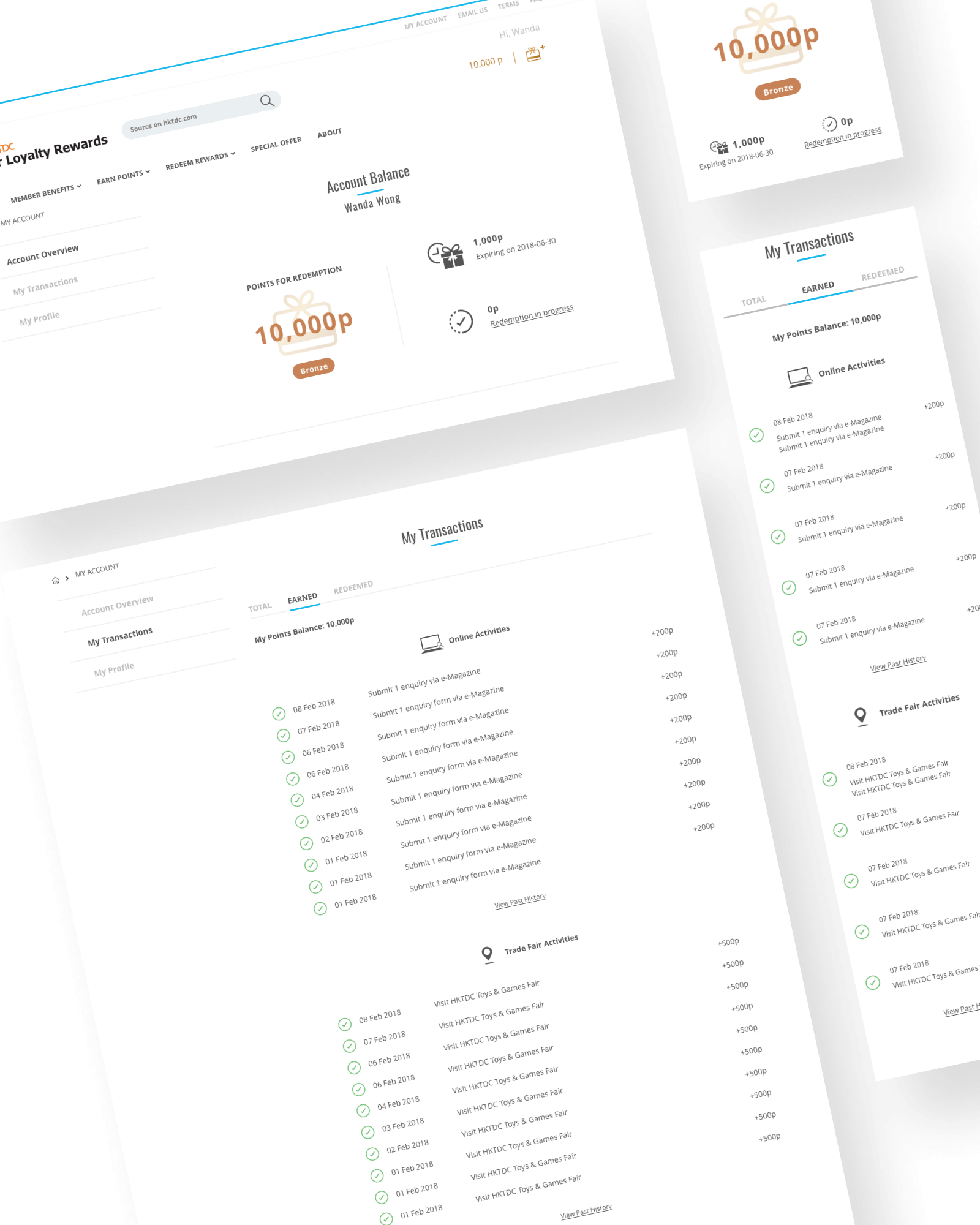 One of the main differences from a normal eCommerce website is the account balance. Since it did not used any online payment, users needed to know each reward transactions clearly , the expiring date of the points and the pending points were also important.
