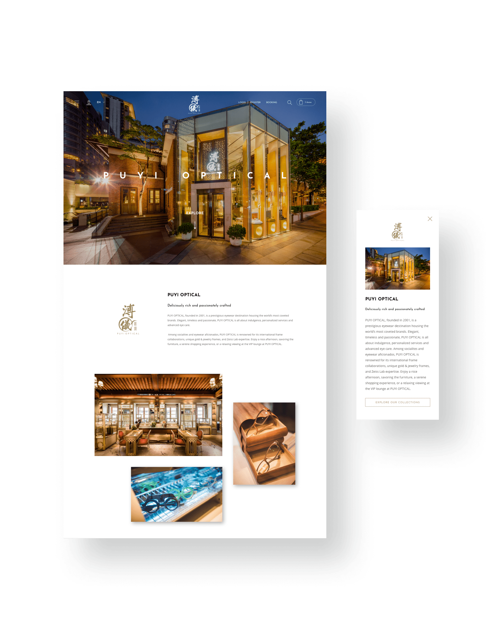 PUYI always can provide us many high quality photos and product images during the website development. I believe these high quality key visuals can increase the completion rates of the website. I made good use of these store images to design a consistent layout for all the store page.