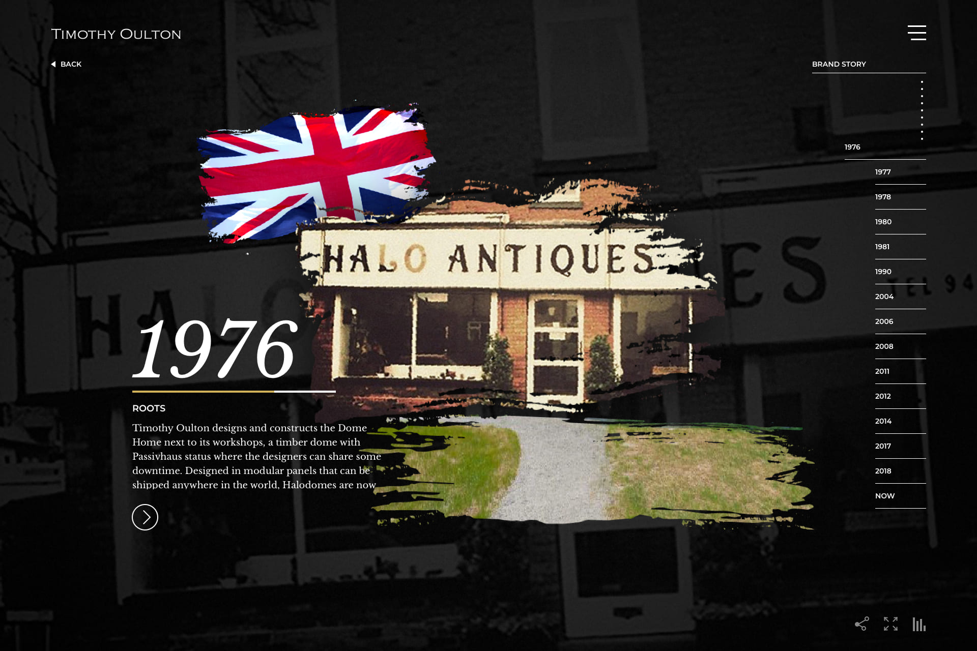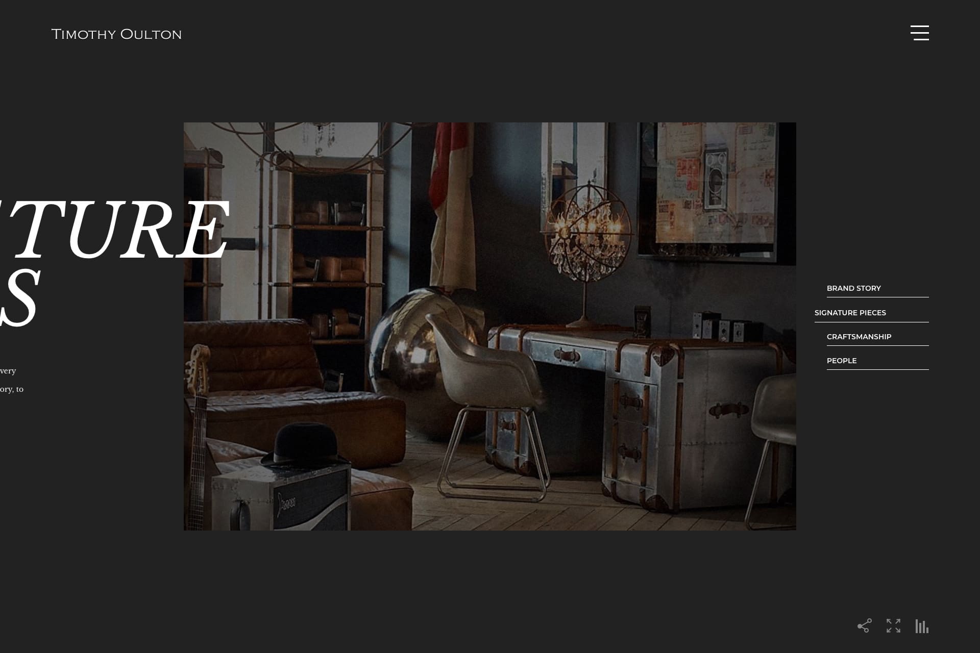Timothy Oulton has its brand history and has a lot of hand crafts products. I think it is worth to make a timeline to present the brand story and try some brush texture transition to discover this handmade business.