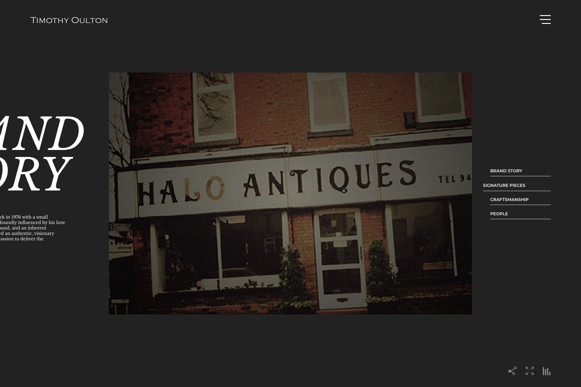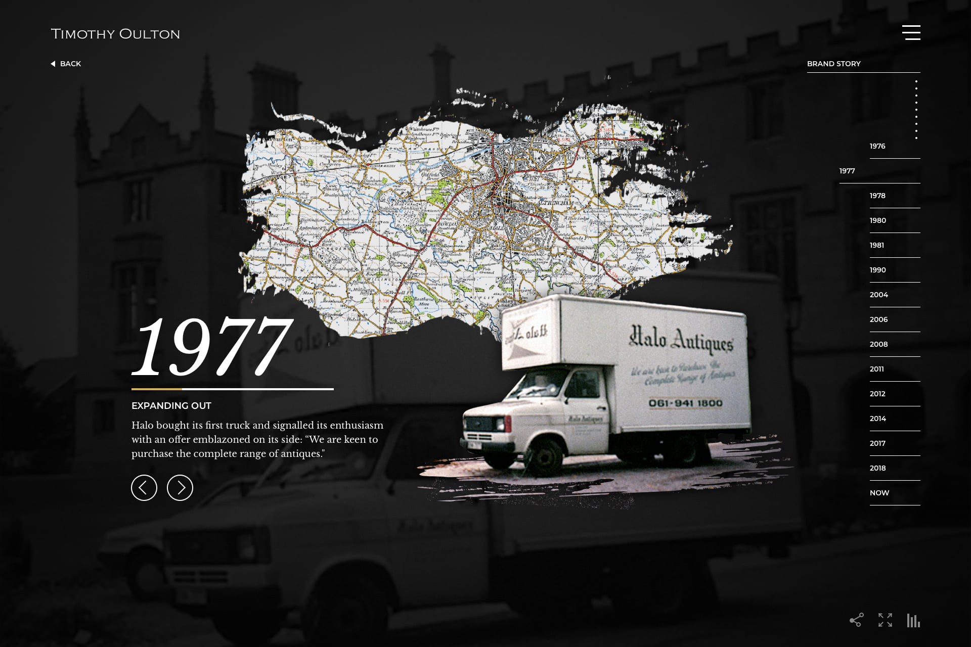 Timothy Oulton has its brand history and has a lot of hand crafts products. I think it is worth to make a timeline to present the brand story and try some brush texture transition to discover this handmade business.